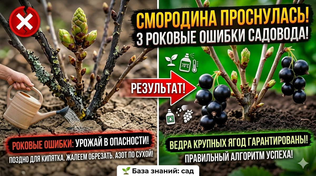Как только сходит снег, смородина первой подает признаки жизни. Ее почки набухают стремительно, и именно в этот момент неопытные дачники совершают ошибки, из-за которых куст вместо ведер крупных ягод выдает горсть мелкой кислятины. Если вы хотите в этом году собирать урожай литрами, проверьте, не делаете ли вы «медвежью услугу» своему саду. Многие слышали про обливание смородины кипятком. Это отличный способ борьбы с почковым клещом и спорами грибков. Но есть один нюанс. Смородина плодоносит на ветках 1–3 года. Всё, что старше, — это балласт. Первая весенняя подкормка — это азот (мочевина или аммиачная селитра). Но лить удобрение в сухую, едва оттаявшую почву — значит обжечь всасывающие корешки, которые только начали просыпаться. Правильный алгоритм: Смородина обожает крахмал. Если у вас накопились картофельные очистки — заварите их кипятком, остудите и вылейте под куст. Ягоды будут размером с вишню! Мы стараемся делать инструкции максимально простыми и полезными, чтобы кажд