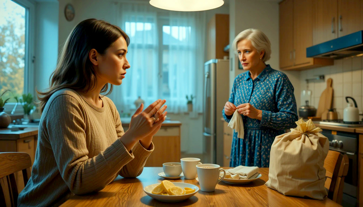 Свекровь сидела на кухне, как будто всегда здесь сидела. На табуретке лежала её сумка. На подоконнике уже стояла банка с валерьянкой, которую она носила с собой, как пропуск в любой спор. Перед ней - чашка с чаем, сахарница с крышкой, сдвинутая чуть в сторону, и Маринина любимая тарелка с лимоном, будто хозяйка тут была не Марина.