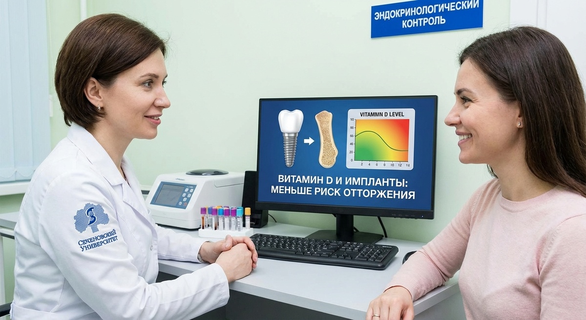 Учёные из Сеченовского университета выяснили, что контроль уровня витамина D и его коррекция под наблюдением эндокринолога могут значительно уменьшить вероятность отторжения зубных имплантов. В результате успешной имплантации удаётся достичь в 97,4 % случаев. В рамках десятилетнего исследования, в котором приняли участие 384 пациента с частичной адентией и дефицитом витамина D, было установлено, что применение холекальциферола (витамина D3) под контролем эндокринолога способствует успешной имплантации у 97,4 % участников. Однако у десяти пациентов был выявлен периимплантит, то есть воспаление вокруг импланта. Это осложнение наблюдалось у тех, у кого уровень витамина D был низким. Екатерина Дьячкова, профессор и один из авторов исследования, отметила, что своевременное определение уровня витамина D и его компенсация значительно увеличивают шансы на успешную установку импланта. Если дефицит витамина незначителен, имплантацию можно проводить сразу после нормализации его уровня. В случае т