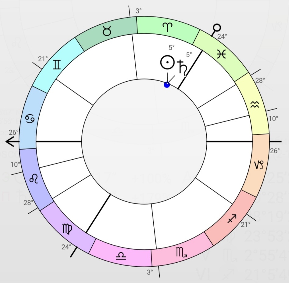 Солнце находится в 6-м градусе Овна, на Сабианском символе — одна сторона квадрата ярко освещена. Символ говорит об утверждения своей индивидуальности с помощью сосредоточенности.