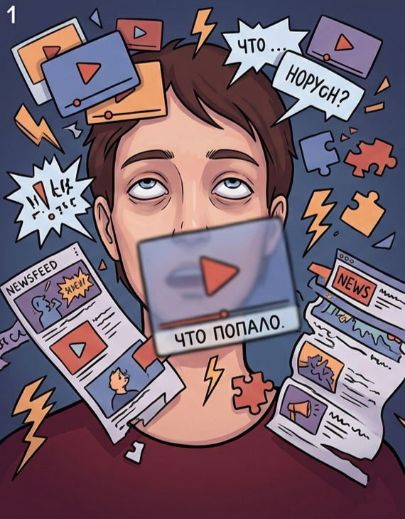 Представьте, что вы пытаетесь читать книгу в комнате, где одновременно работают перфоратор, играет музыка и кто-то непрерывно щелкает выключателем. Примерно в таком состоянии находится человек, который хаотично поглощает видео-контент. В результате: