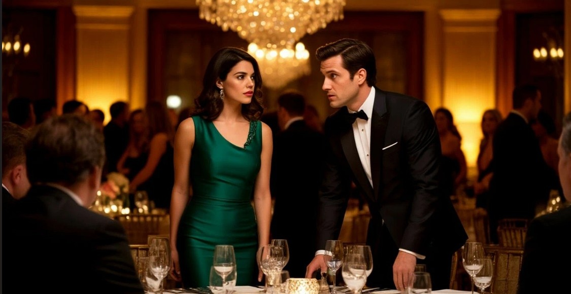 На ней было потрясающее изумрудное платье из струящегося шелка, которое подчеркивало идеальную фигуру. Волосы, уложенные в легкую волну, спадали на одно плечо. Она держала бокал с шампанским и что-то увлеченно рассказывала мужчине, сидящему рядом. Мужчина — импозантный, с благородной сединой на висках — смотрел на нее с нескрываемым обожанием и нежно держал за руку.