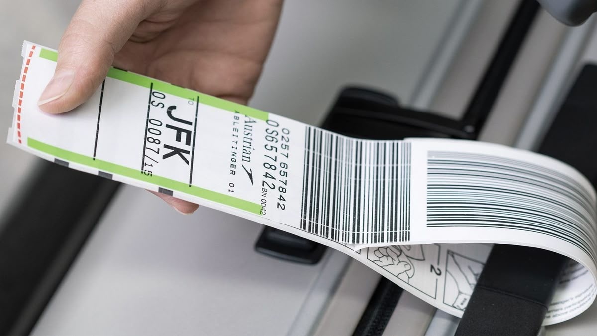 Сразу после регистрации на стойке чемодану клеят багажную бирку с уникальным 10-значным номером (IATA-код) и штрих-кодом. В этой бирке зашита вся информация: ваш рейс, конечный пункт, пересадка и данные пассажира.