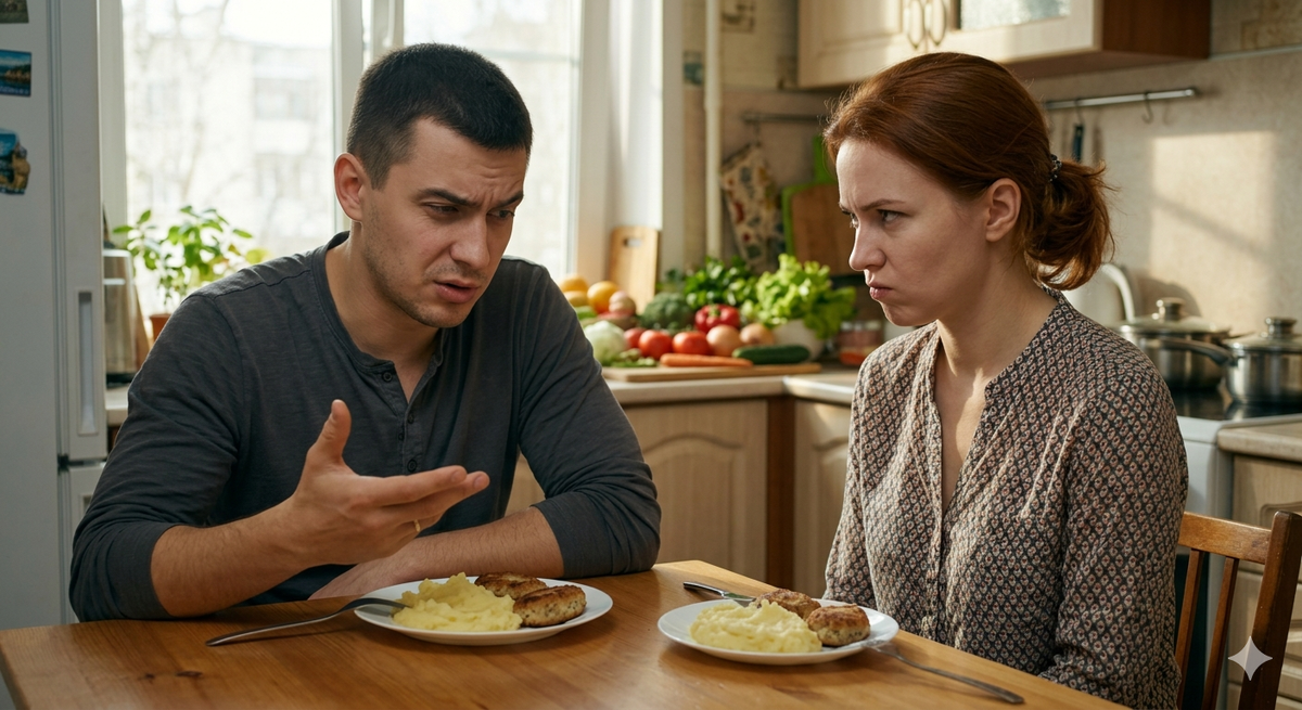 Максим замер. До него, кажется, начало доходить. Обед упал в желудок тяжелым комом осознания собственной неправоты. Он вспомнил, как Лена старалась, как украшала блюда зеленью, как ждала его с работы... и как он всё это перечеркивал одной фразой.