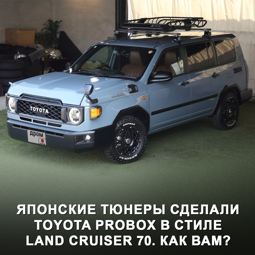 Ателье Hakobanya из Фукуоки представило проект 70 Box — это Probox, напоминающий Toyota Land Cruiser 70. Универсал получил: — Круглую LED-оптику, а также новую решётку радиатора и бамперы из неокрашенного пластика. — Поворотники и зеркало заднего вида в стиле Крузака. — Кастомные передние крылья и капот. — Пластиковые накладки на колёсные арки, легкосплавные колёсные диски и внедорожные покрышки. — Лифт подвески и экспедиционный багажник на крыше. — Отделку под дерево в салоне, чехлы на сиденья из экокожи, а также мультимедиа Alpine. Техника — без изменений: мотор 1,5 л с вариатором или гибридная система, доступен и 4WD. Комплект доработок от Hakobanya оценивается примерно в 800 000 ₽. Красивое или обычный Probox лучше? 🤔 #дромновость #япония #тюнинг #toyota #probox