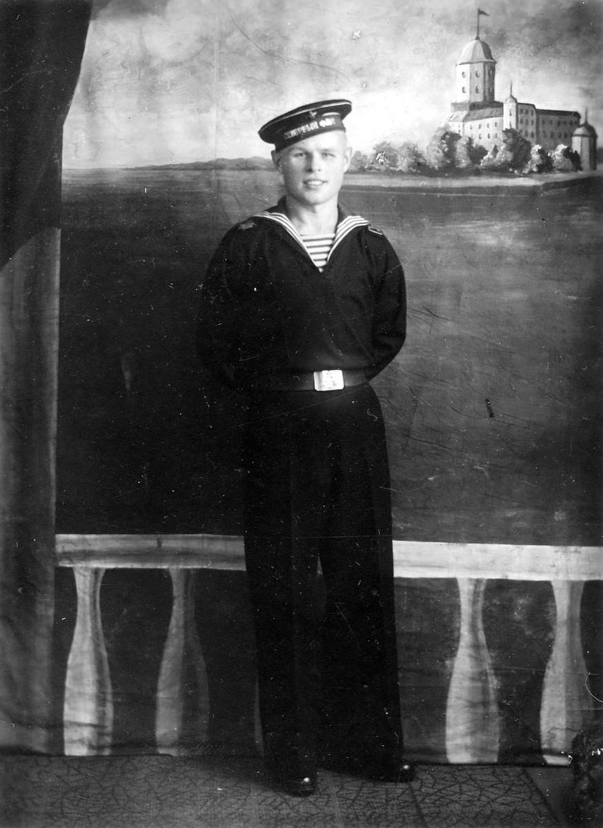 ". На обороте - "На долгую память Юрию Азарову от Леонида Шевандова в честь совместной учебы в г. Выборг. В минуты радости, а также невзгод вспоминай о этом промежутке времени. 16.11.1950 г.". Источник: отсканированная фотография из личной коллекции. #фото #матрос #Северный_флот #СФ #ВМФ #Выборг