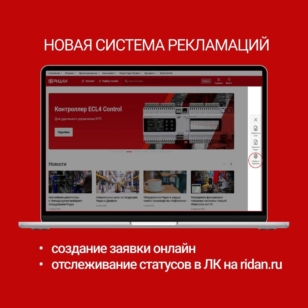 С 20 марта 2026 года запущена новая система рекламаций. Теперь не только оформить заявку можно на сайте ridan.ru, но и отследить её статус — через личный кабинет. Также у нас запущена круглосуточная техническая поддержка. Специалисты готовы оперативно помочь в решении любых вопросов 24/7. 🔤 Эффективность. Инновации. Развитие