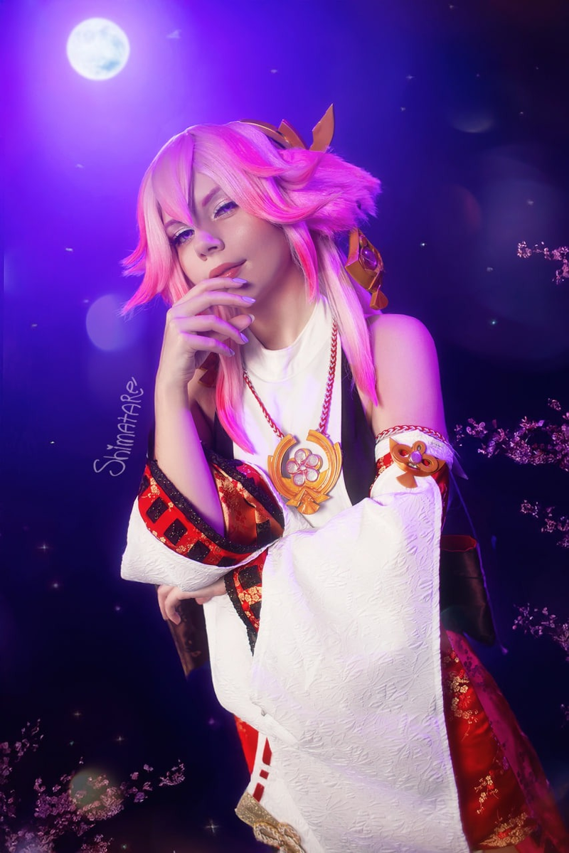 Образ Yae Miko из Genshin Impact в исполнении Shimatare получился изящным, загадочным и по-настоящему магическим. Розовые волосы, элегантный наряд жрицы Инадзумы и фирменные украшения передают харизму хитрой и мудрой лисицы, а фиолетовое свечение, лепестки сакуры и ночная атмосфера создают ощущение настоящей сцены из мира Тейвата. Благодаря мягкому свету и эффектным деталям фотосет выглядит как момент из магического приключения, где Yae Miko одновременно очаровывает и демонстрирует скрытую силу электро-архонта. Фэндом: Genshin Impact