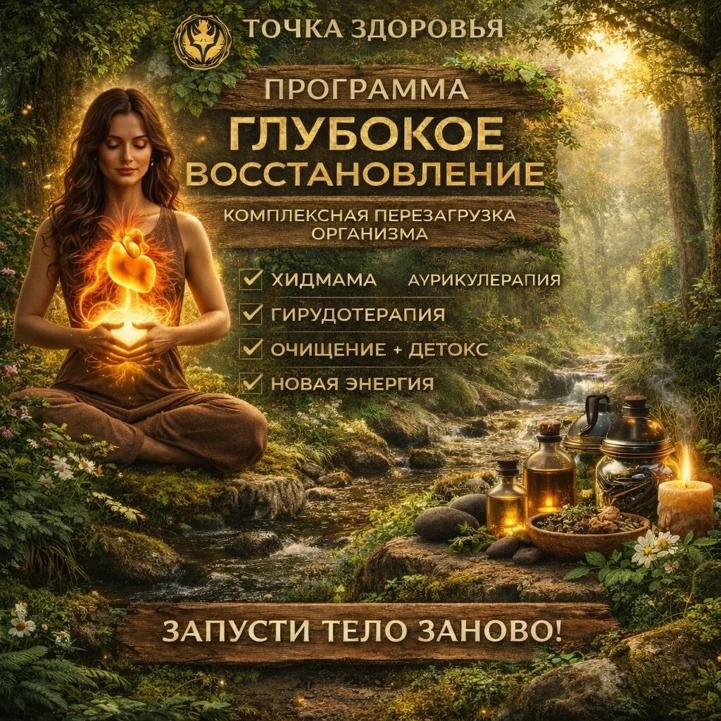 Знакомо это чувство? Утро, ты встаешь, улыбаешься, отвечаешь «нормально» на вопрос «как дела?». А внутри — будто свинцовый ком. Тело существует само по себе, а голова — сама по себе. Волевым усилием мы тащим этот груз годами. Но ресурс — не бесконечен. И обычный выходной уже не лечит. Пластырь не поможет, когда нужна глубокая перезагрузка. Я собрал программу «ГЛУБОКОЕ ВОССТАНОВЛЕНИЕ» не как набор процедур, а как системный ключ к вашему организму. Мы не просто «снимаем симптом». Мы возвращаем телу ту самую легкость, по которой оно так скучает. Что внутри: 👍 2 хиджамы — убираем «грязную» кровь и застойные явления, освобождаем место для нового. 👍 3 гирудотерапии — возвращаем крови текучесть, запускаем микроциркуляцию там, где годами был застой. 👍 2 висцеральных массажа — мягко возвращаем органы на их анатомические места, убираем внутренние зажимы. 👍 2 аурикулотерапии — «перезагружаем» мозг, успокаиваем нервную систему, убираем тревогу. Это не просто курс процедур. Это инвестиция в