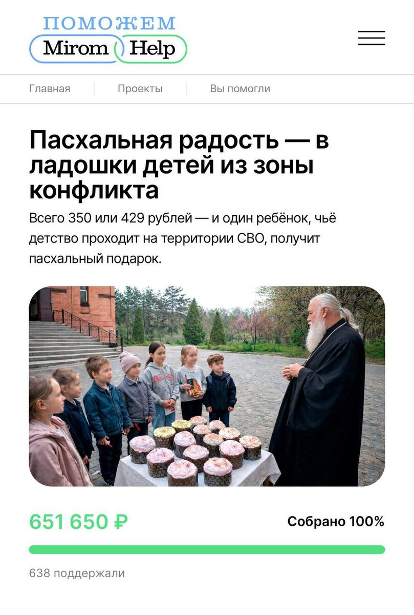 💚 Дорогие друзья, сердечно благодарим всех, кто помог нам собрать средства на подарки для детей к Светлому Христову Воскресению
