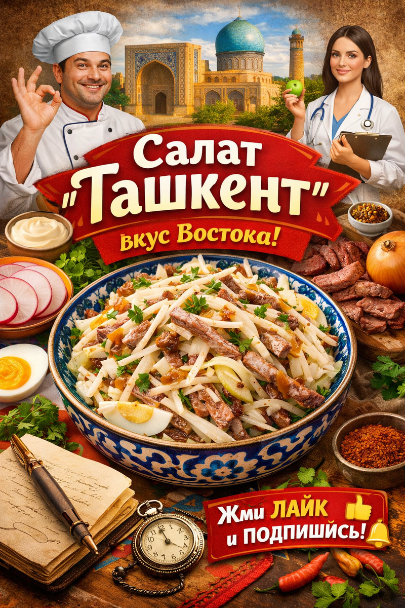 Если вы думаете, что вас уже сложно удивить салатами — подождите, пока попробуете «Ташкент». Этот сочный, ароматный и необычный микс простых ингредиентов давно стал легендой кухни Средней Азии. И сегодня я расскажу, почему его стоит приготовить прямо сейчас.