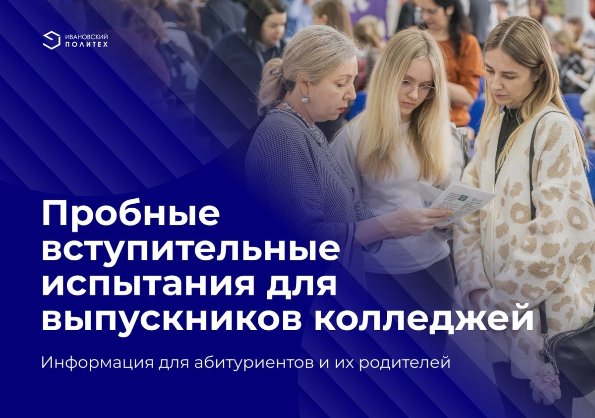 5 апреля, в День открытых дверей ИВГПУ выпускники колледжей смогут познакомиться с процедурой проведения вступительных испытаний и попробовать свои силы на пробных тестах. 📅 5 апреля, 10:00 📍 г. Иваново, Шереметевский пр-т, д. 21 👉 Регистрация на мероприятие обязательна 👈 При себе необходимо иметь документ, удостоверяющий личность ❗️Напоминаем, с этого года вступили в силу Правила приема в университет выпускников колледжей и техникумов. Молодые люди, имеющие диплом о среднем профессиональном образовании, могут поступать в ИВГПУ по внутренним вступительным испытаниям при условии, что профиль СПО соответствует выбранной программе высшего образования. 👉Порядок соответствия программ установлен в Приложении 1 к Правилам приёма. Это – в разделе нашего сайта ПОСТУПАЮЩИМ В ИВГПУ. 👻 ИВГПУ в MAX | 📲 ИВГПУ в ВК 👻 Приемная комиссия ИВГПУ