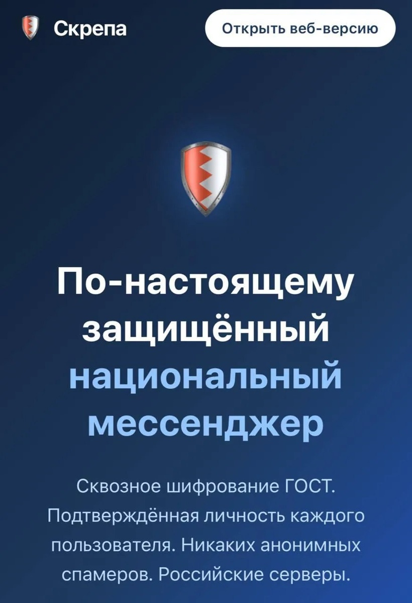 В России появился мессенджер «Скрепа» с обязательной идентификацией пользователей