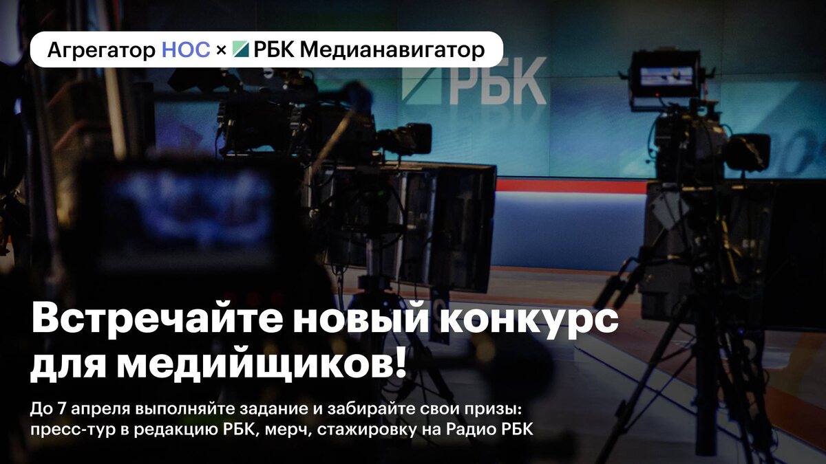 ! 🚀 Вместе с «РБК Медианавигатор» мы снова запускаем конкурс — вы сможете попробовать свои силы в задании для стажёров и выиграть крутые призы. В прошлом году вместе с медийщиками мы уже побывали в офисе РБК — смотрите видео с пресс-тура. А в этот раз узнаем больше о радио! Кто может участвовать? Начинающие редакторы — те, кому интересно работать с новостями и быстро ориентироваться в информационной повестке. Пресс-тур пройдёт в Москве, поэтому ждём ребят из столицы Что можно выиграть? ⏺ пресс-тур в редакцию РБК ⏺ фирменный мерч ⏺ главный приз — стажировка в московском офисе Радио РБК Что делать? До 7 апреля пишите в бот НОС «Конкурс РБК», выполняйте задание и отправляйте его обратно в бот — не забудьте указать ФИО и вуз. 9 апреля мы подведем итоги конкурса! ⬜⬜⬜⬜⬜⬜⬜⬜⬜ ➡️ НОС: Телеграм | ВКонтакте | МАХ