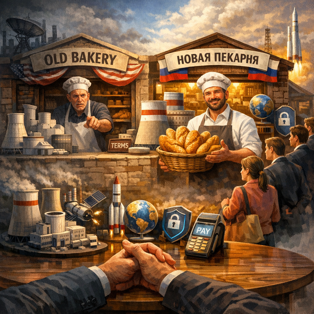 Именно это сейчас происходит на мировой технологической арене. Только вместо хлеба — атомные станции, спутниковые системы, платёжные сервисы и кибербезопасность.