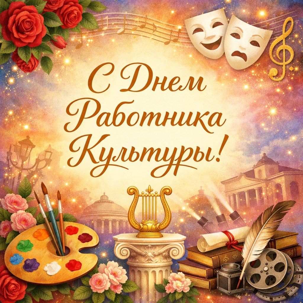 С профессиональным праздником, наш культурный стратег и тактик! Как известно, работник культуры — это универсальный солдат: он и сценарист, и режиссер, и осветитель, и звукорежиссер, и грузчик, и психолог для обиженных участников самодеятельности. Желаю тебе, чтобы в твоей жизни случился настоящий «культурный переворот»: чтобы тяжелые декорации стали невесомыми, бюджеты — безлимитными, а количество зрителей всегда превышало количество написанных планов. Пусть муза приходит к тебе не с проверкой, а с шампанским!
