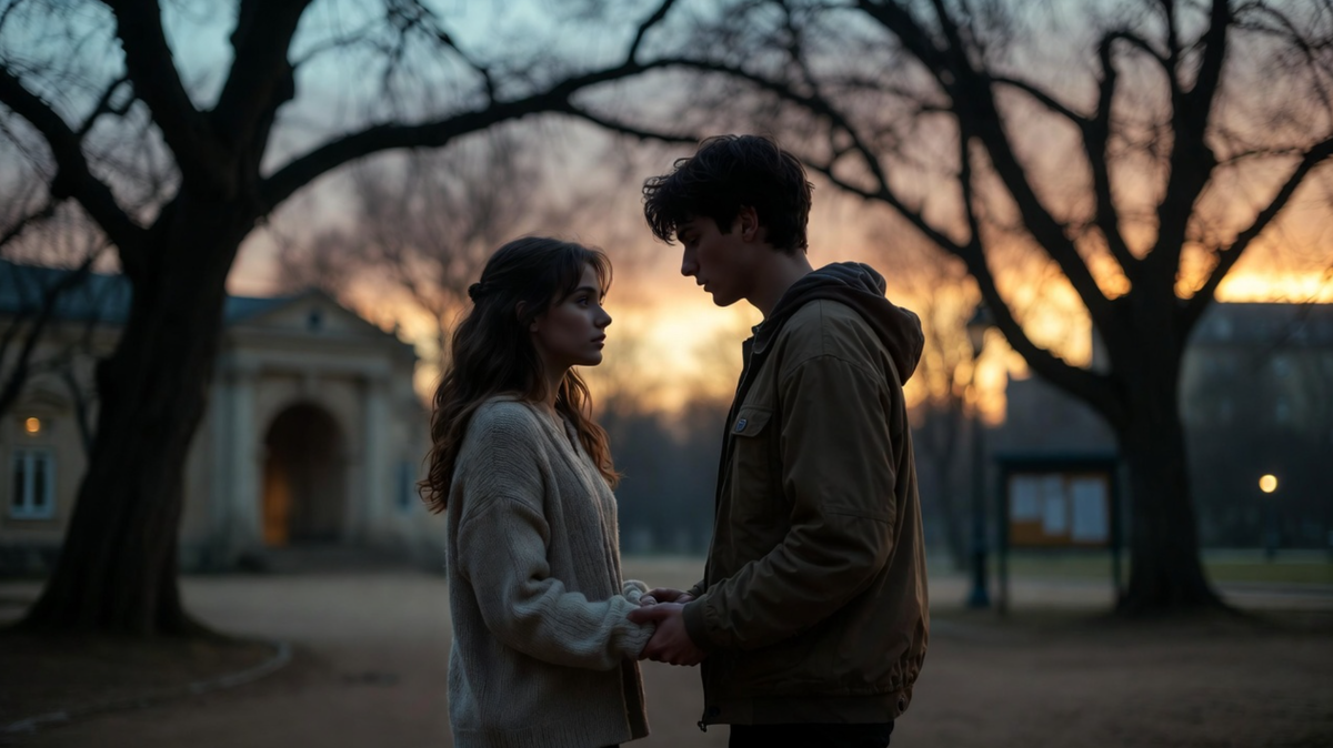 Они стояли в сумерках, обнявшись, и ветер шевелил её волосы. Вдалеке слышался шум города, но здесь, в их маленьком убежище, было только двое и их страх перед будущим.