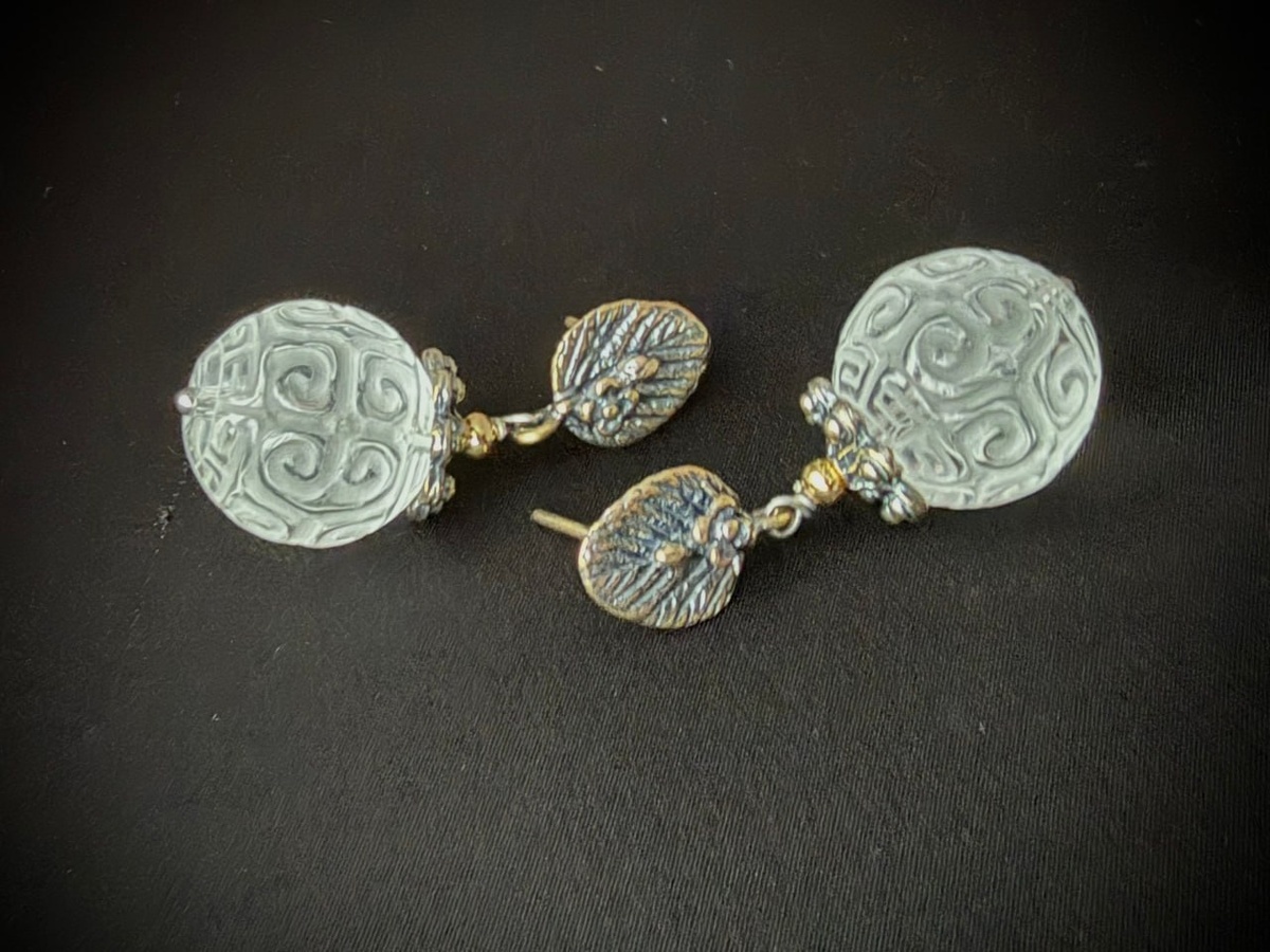 Серьги с резными бусинами горного хрусталя.