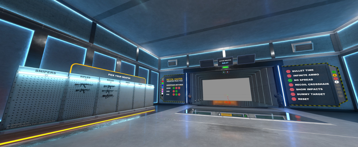 Прежде чем заходить на карты, настройте бинды и убедитесь, что autoexec не слетает после обнов. Затем используйте 15-минутный регламент разминки: сначала статика на точность, потом движение, затем спрей. Для аима и реакции выбирайте карты с аналитикой и реалистичным поведением ботов — например, GGPREDICT Training Hub или Aim Training - Reflex. Для контроля отдачи — Recoil Master (CS2 Edition) с режимом Ghost Hair. Занимайтесь регулярно, но без фанатизма: 15–20 минут в день лучше, чем час раз в неделю. Без правильной настройки игры на вашем аккаунте любая тренировка будет малоэффективной. Вот два обязательных шага: Уделите этим аспектам внимание и вы начнёте «просыпаться» уже в пистолетном раунде, а не к середине игры. Теперь перейдем к тому, как прокачивать аим. Карты, которые мы показали далее, прокачивают чувствительность мыши, скорость наведения и привычку держать прицел на уровне головы. GGPREDICT Training Hub. Футуристичный хаб с продвинутой аналитикой. Главная фишка — режим «Pre-