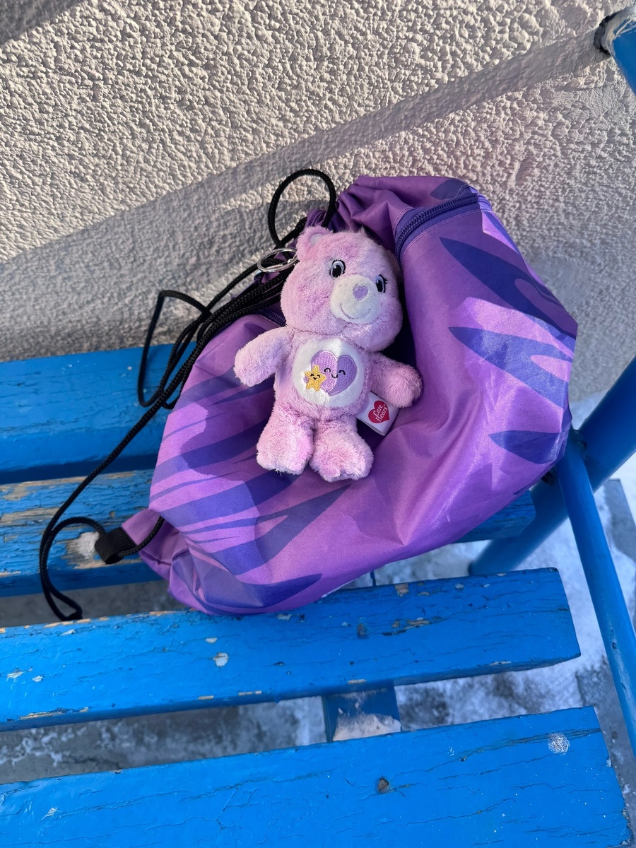 Лежит сумка сменка уже неделю на скамейке по адресу Броднева 28а 6 подъезд. Мишка хочет к хозяйке)