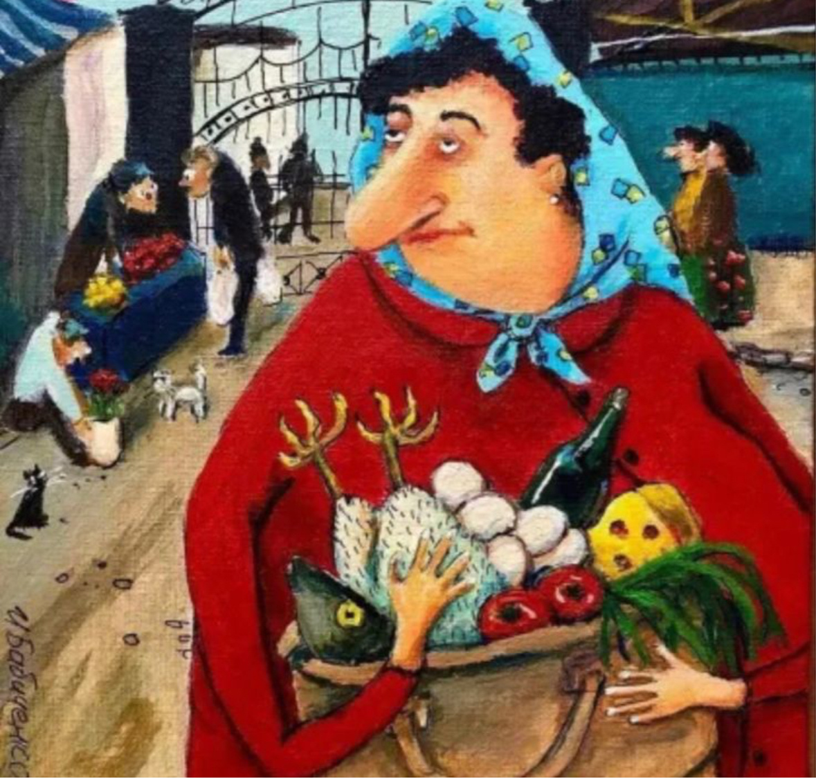 Одесса. Привоз. Меж рядами ходит Хаим и приценивается к продуктам, снимая пробу в каждой лавке. Когда он заходит на третий круг, Роза Львовна с колбасной не выдерживает: