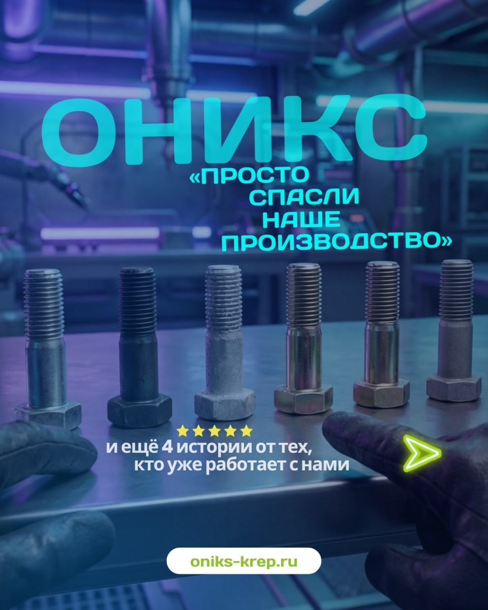 Листайте карусель — 5 реальных отзывов, как с нами решаются проблемы Что объединяет всех наших клиентов: 🏭 Качество — высокопрочный крепёж 10.9 / 12.9 с сертификатами без напоминаний 🚛 Доставка — Москва, Питер, вся Россия. Надёжная упаковка, 0 повреждений ⚡️ Скорость — оплатили → отгрузили В ТОТ ЖЕ ДЕНЬ. Даже когда «нигде не могли найти» 📦 Сервис — каждая позиция в отдельном зип-пакете с маркировкой. Мы экономим ваше время ───────────────── 📍 Больше отзывов на Яндекс Картах → ищите «ОНИКС крепёж» ───────────────── 🔥 Хотите так же? Всё просто: Один клик — один ответ — ваш крепёж в пути 🚛