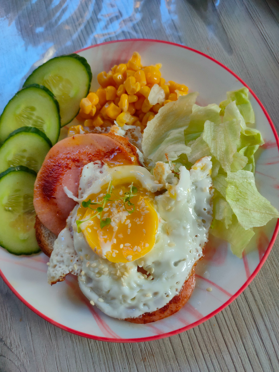 Доброго дня всем вам, милые дамы , верные спутники моего канала, а также те, кто из интереса заглядывает на его страницы! Меня зовут Надежда, и я приглашаю Вас на мою кухню, где покажу Вам мое меню на день. Какое чудесное сегодня утро. С самого утра светит солнышко. На термометре уже + 6 градусов. Сейчас приготовлю завтрак и пойду в теплицу. Хочу посеять раннюю и цветную капусту, а еще салат и редис. А завтрак у меня был такой: жареная колбаса, на батоне и глазунья, дополнением был свежий огурец, кукуруза и порвала руками салат айсберг, сварила натуральный черный кофе, который у меня убежал, так что после завтрака придется отмывать плиту, к кофе был кусочек рулета, сыр и конфета. Помыла посуду, отмыла плиту и решила навести порядок на кухне, а потом с Бобби пошли гулять, пока он бегал по саду я сеяла семена капусты, салата, редиса. Земля влажная, набросали с Мишей загодя снега, он весь растаял, в теплице тепло, присыпала все бороздки землей, забросала снегом, укрыла пленкой, Принесла е