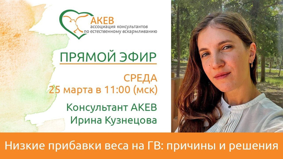 Тема: Низкие прибавки веса на гв. Причины и их решение. В эфире консультант по гв, стажер АКЕВ Кузнецова Ирина расскажет - Какие прибавки в весе считаются нормальными - Что делать, если прибавки недостаточные - очевидные и неочевидные причины недобора веса 📅Эфир состоится 25 марта ⏰ в 11.00 (мск) 👩💻 ВКонтакте на странице АКЕВ vk.com/akev_info Вся информация о спикере на сайте АКЕВ - clck.ru/3SehrE Готовьте свои вопросы и приходите на эфир!