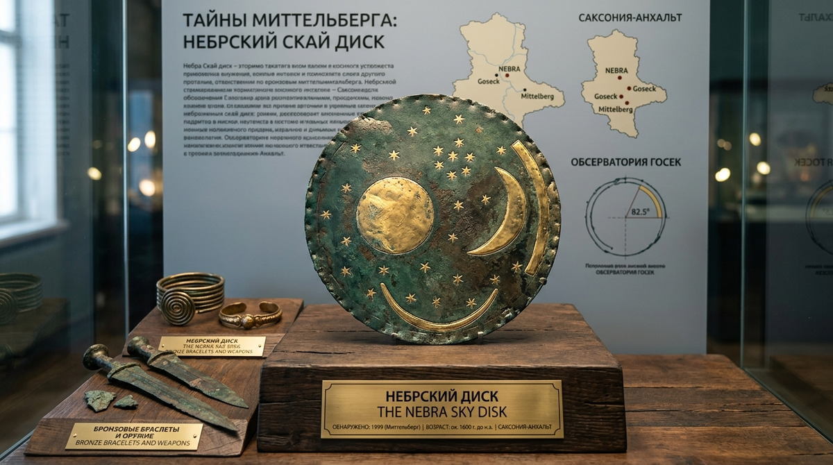 В федеральной земле Саксония-Анхальт, в Германии, находится небольшой город Небра. Неподалеку возвышается гора Миттельберг. В конце XX века на её склонах были обнаружены артефакты, которые до сих пор будоражат умы историков, археологов и астрономов.