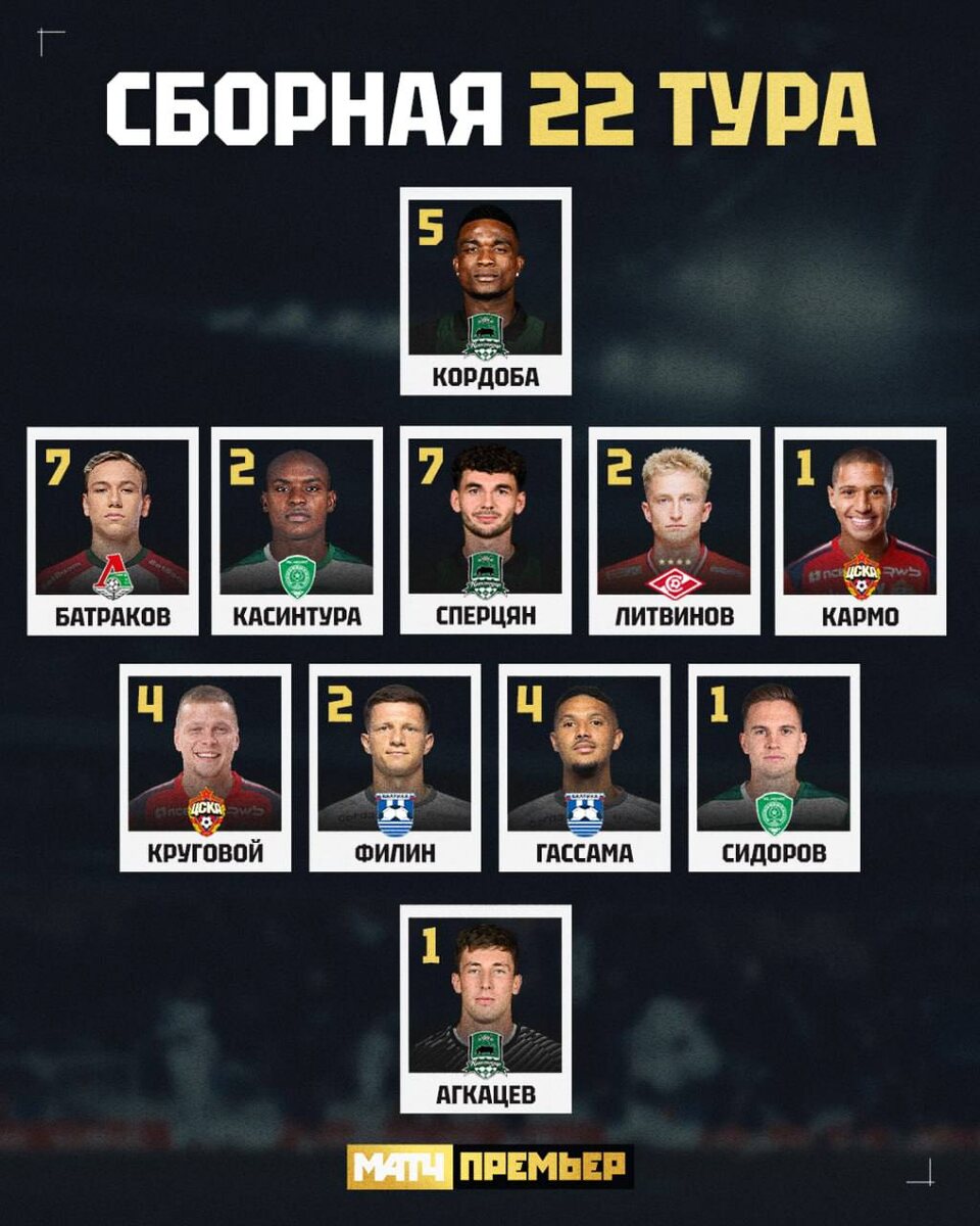 Натан Гассама и Александр Филин в составе сборной 22-го тура Мир РПЛ по версии Матч Премьер 🦬