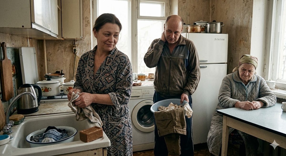 — Вот! Вот оно, твое истинное лицо, Зинаида! Попрекаешь мать куском колбасы! Да я в ваши годы на трех работах пахала, в проруби белье полоскала, и ничего, руки не отвалились! А вам все машины подавай, все роботы! Обленели в край! Вот, бери таз. Тут Валерины вещи и мои. Настругаешь мыла темного, того, что я привезла, зальешь кипяточком и пусть отмокает. И не вздумай порошок свой химический сыпать, от него аллергия и растраты!