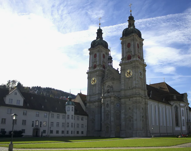 ****************************************** Монастырь Святого Галла, или Санкт‑Галленское аббатство, — один из важнейших бенедиктинских монастырей Европы, расположенный в швейцарском городе Санкт‑Галлене. Это выдающийся центр религии, науки и культуры эпохи Средневековья, включённый в список Всемирного наследия ЮНЕСКО. ****************************************** Согласно традиции, монастырь был основан в начале VII века ирландским монахом святым Галлом (ок. 550–640), учеником святого Колумбана. Около 612 года Галл поселился в уединении у реки Штайнах — на территории современной восточной Швейцарии. Вскоре вокруг него образовалась монашеская община. Первое документальное упоминание о монастыре относится к 719 году. Настоятель Отмар стал первым официально зафиксированным аббатом. При нём началось строительство первых каменных зданий и формирование монашеской общины по правилам святого Бенедикта Нурсийского. Ключевым периодом в истории монастыря стали VIII–IX века. При аббатах Вальдо (740‑е