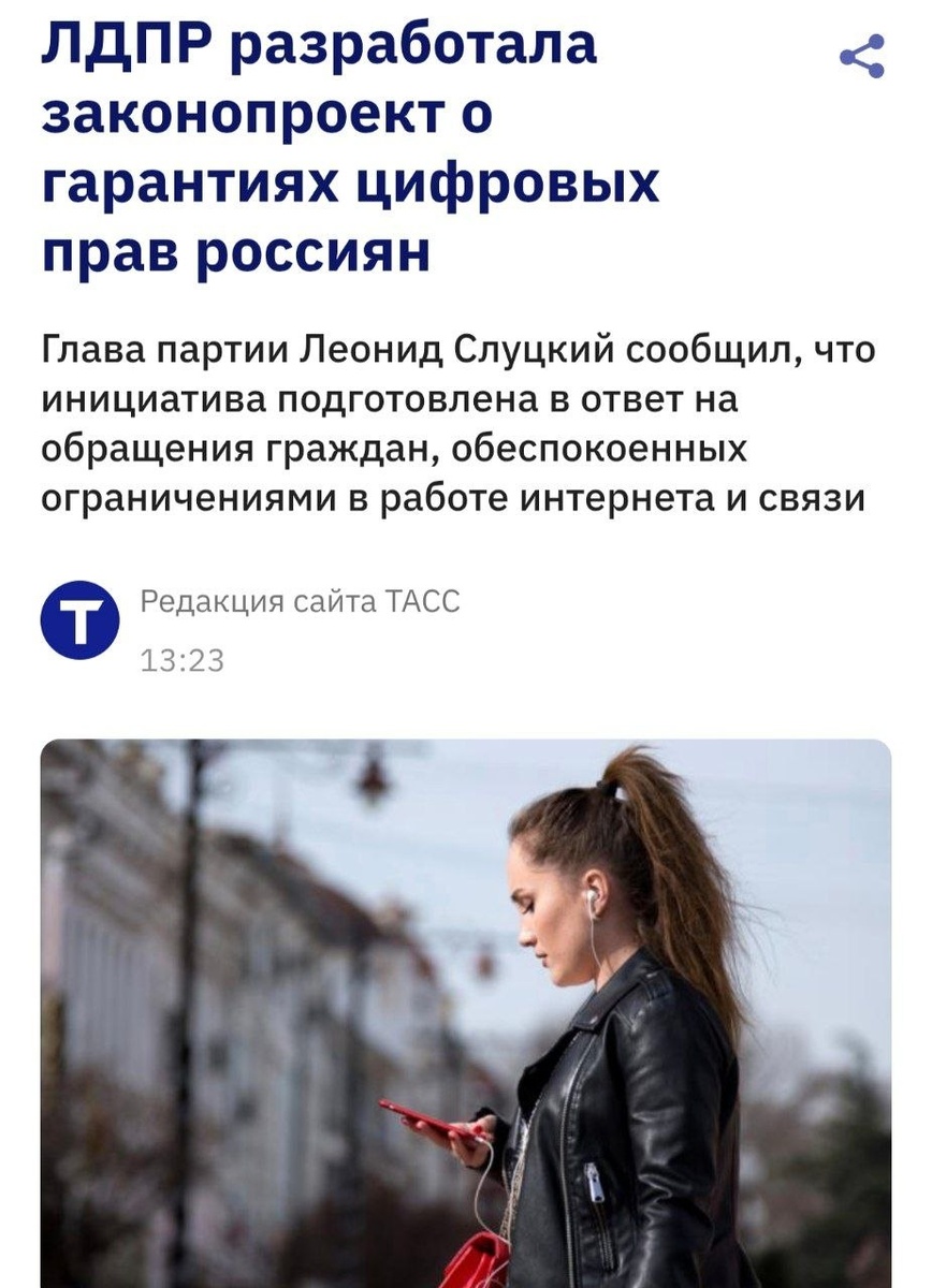 В новом законопроекте партия указала, что каждый гражданин должен иметь право свободно выражать свои мысли в сети. «Людям нужны гарантии, что они и дальше смогут использовать цифровую инфраструктуру и связь. Ведь они давно легли в основу нашей привычной жизни и работы» — глава ЛДПР Леонид Слуцкий. Надеемся, что закон пройдет все чтения 🤓🤓 Сделаем удивленные лица, когда никто ничего не примет. Источник: Jeteed