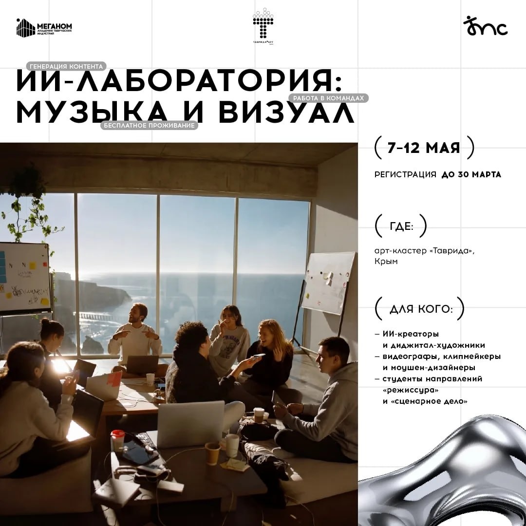 » 🤖🎶 ИИ-креаторы, диджитал-художники, видеографы, клипмейкеры, моушен-дизайнеры, студенты и молодые специалисты творческих индустрий для вас открыта регистрация на новую программу «ИИ-лаборатория: музыка и визуал». О чем эта программа? Настоящий хакатон для ИИ-креаторов, которые будут создавать нейрогенеративный контентдля продвижения артистов лейбла «Таврида.АРТ» и участников Творческого молодёжного сообщества современной музыки. Если вы уже работаете с генеративными нейросетями и хотите создавать визуал для современной музыки - это ваша возможность создать устойчивые профессиональные связи и запустить новые совместные проекты. 📝 Подать заявку можно до 30 марта 🖇 КГУ в MAX