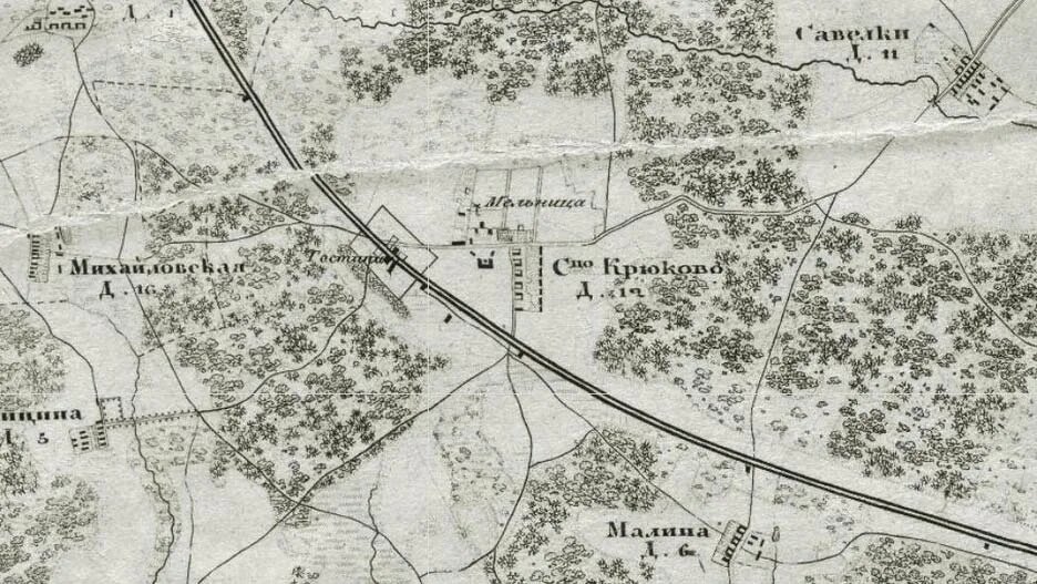 📷 Фото 1: Старая карта Московской губернии с селом Крюково (XIX век).
