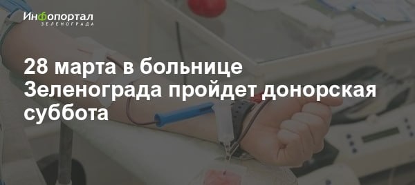 28 марта в больнице Зеленограда пройдет донорская суббота — для желающих сдать кровь добровольцев, которым сложно сделать это в будни