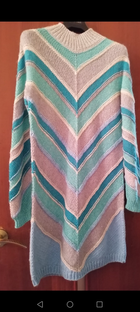 Всем привет! Свою бирюзовую японку я связала год назад, но фото не выкладывала, как то так вышло Вязала в две нити спицами #4 Пряжи ушло где то 700 грамм, размер 50-52 Получилась длинная, мягкая и тёплая Использовала несколько цветов, интересное вышло ассорти! Пряжа использовалась разная, в основном полушерсть Вязалась легко и быстро, на одном дыхании ( примерно 3 недели) Платье вышло интересное, на мой взгляд. Дизайн мой, в единственном экземпляре- эксклюзив. Какова его судьба? Отвечаю: висит в шкафу, как и многое другое. Не носила совсем, т.к. являюсь пенсионеркой -домоседкой Вот думаю продавать Наверное, выложу на Авито Как думаете, кто нибудь купит? Что вы думаете по этому поводу? Напишите Спасибо всем за внимание! Всем удачи! Доброго здоровья! пока пока P.S. Не забудьте, пожалуйста, подписаться и поставить свой лайк, мне будет очень приятно! И конечно же, жду ваших комментариев!!!