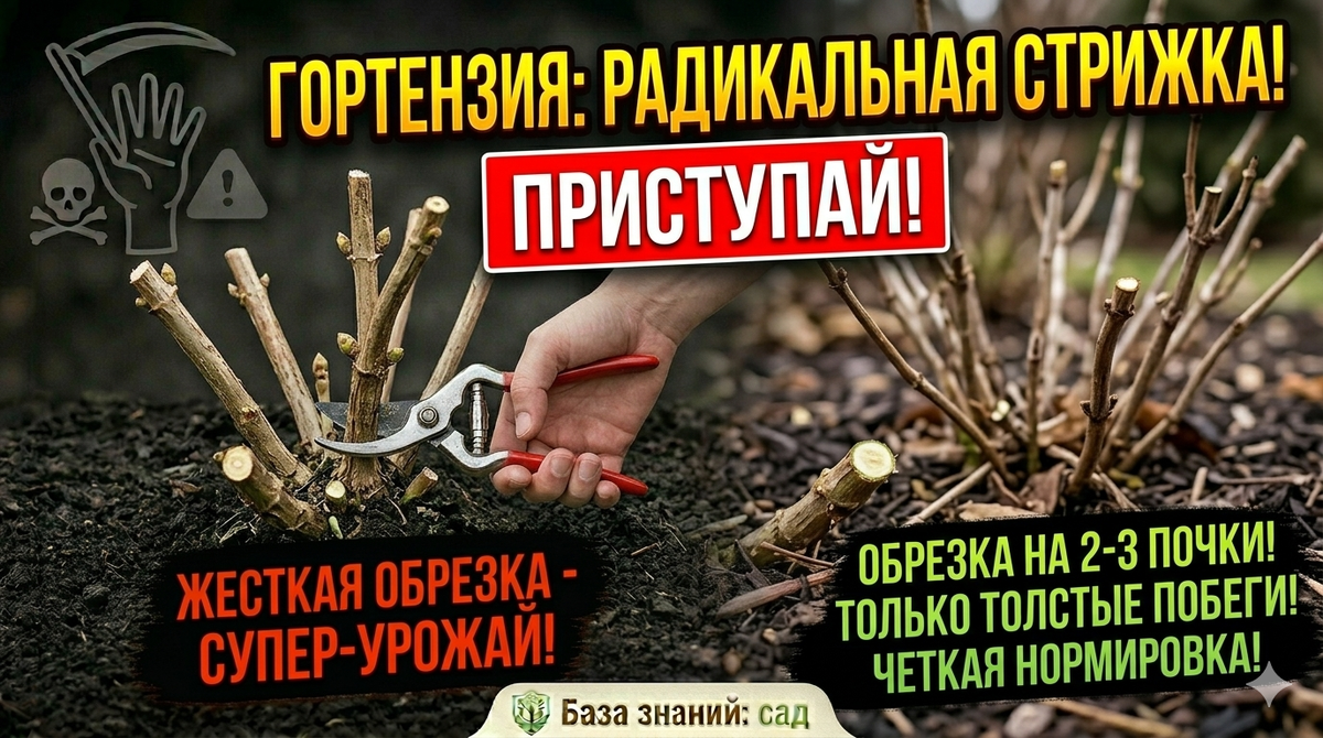 - Для гигантских соцветий: Оставляем на каждой ветке всего 2–3 почки от земли (или от развилки прошлого года). Да, куст будет ниже, но шапки цветов будут просто королевскими.