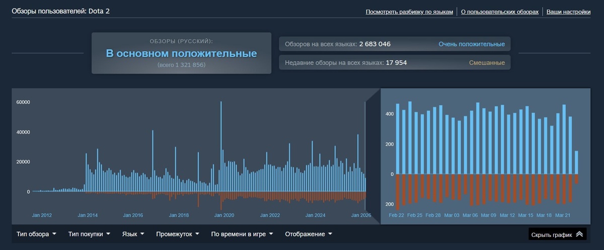 В Dota 2 начался ревьюбомбинг недавние отзывы в Steam обвалились до смешанных