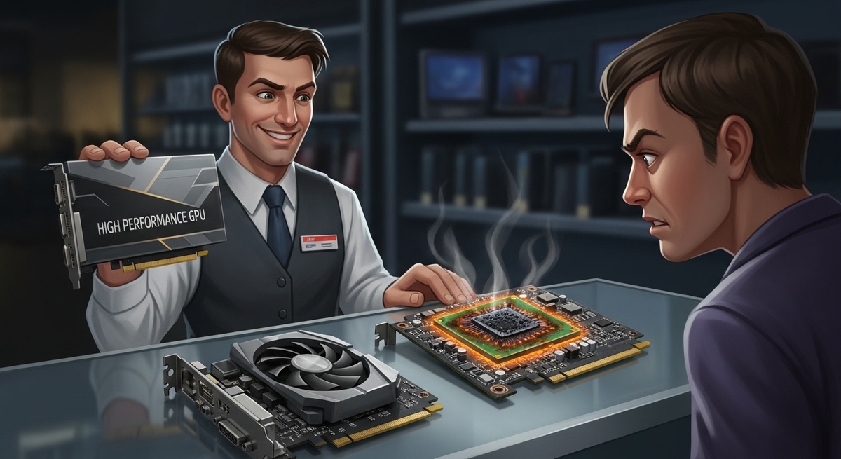 Тут в ход идет «косметика». Чтобы скрыть следы термического износа, чипы просто перекрашивают обратно в заводской цвет. Сверху ставят сверкающую систему охлаждения с яркими вентиляторами, упаковывают в красивую коробку — и вуаля! Перед вами «стопроцентно новая» видеокарта, которая пахнет не старой фермой, а свежим пластиком.