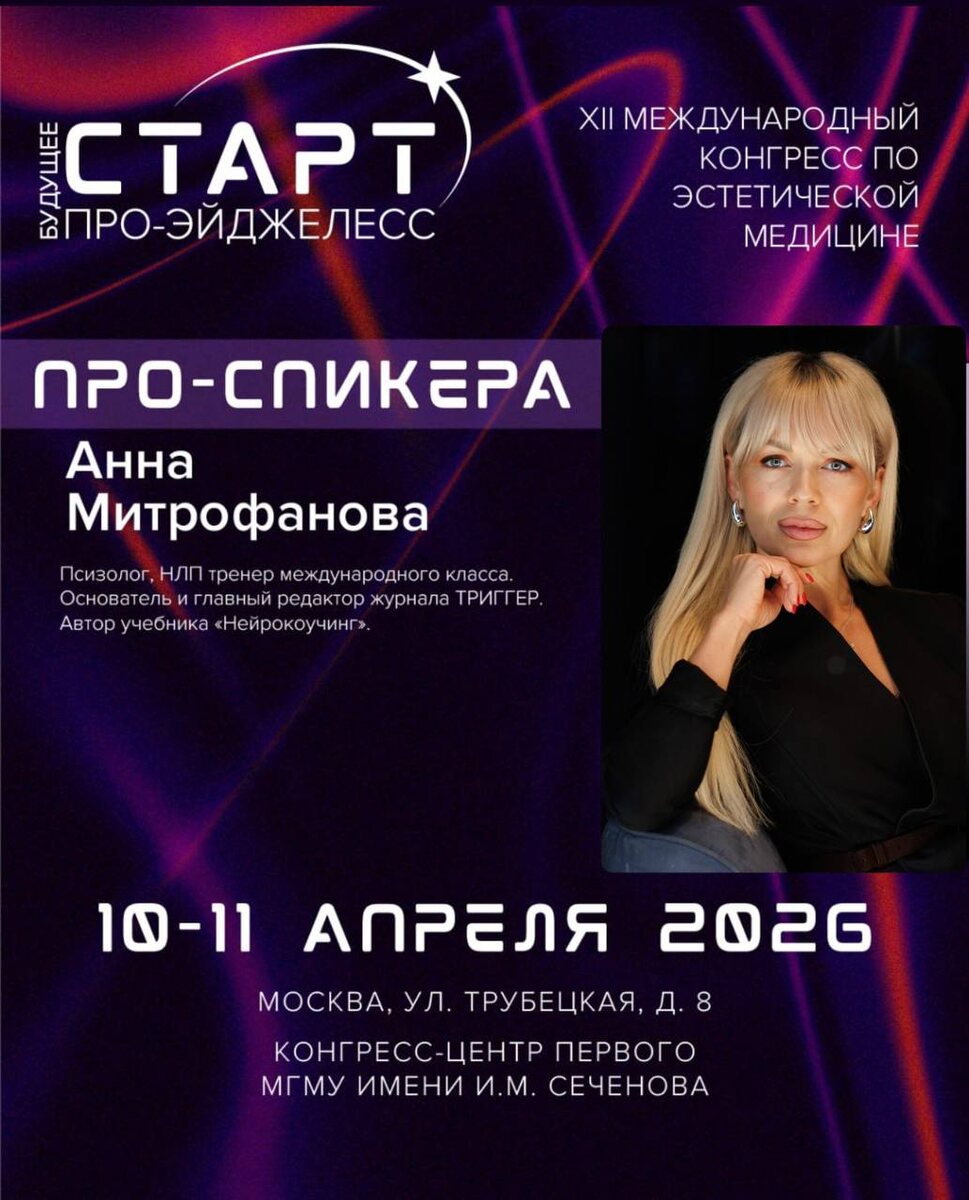 🗓 10–11 апреля 2026 года приглашаем вас на XII Международный конгресс по эстетической медицине «PRO AGELESS 2026». Тема конгресса: «Время первых!» ▫️ Формат: очный Наш главный редактор и основатель журнала Анна Митрофанова выступит спикером на международном конгрессе PRO AGELESS @pro_ageless ⭐️ Для вас действует промокод WELCOME — используйте его при покупке билета на сайте конгресса и получите скидку 50%: https://pro-ageless.ru/ ⚜️ Вместе с международной командой экспертов и Academy Advance Professional @dr_saromytskaya @academyadvance_professional мы рассмотрим богатый опыт и современные тренды русской косметологической школы, а также познакомим вас с ведущими российскими производителями. Будем рады встрече с вами на PRO AGELESS 2026!