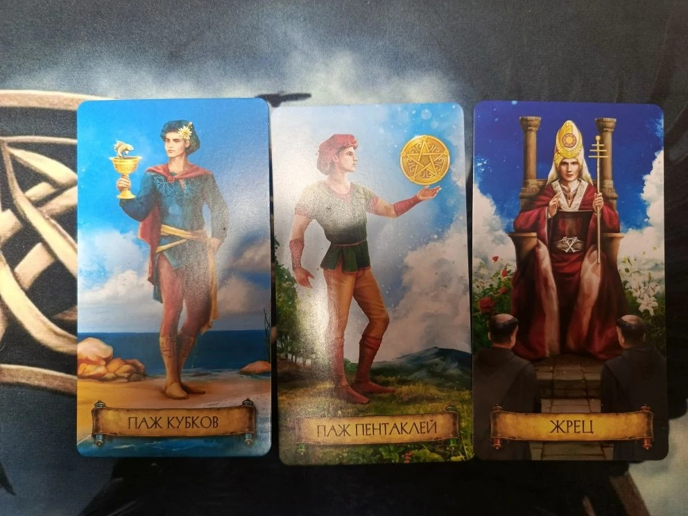 А вот рядом с Пажиками Жрец - скорее всего Наставник (учитель, отец, тренер) который должен воспитать в этих ребятах принятие Мира и людей, таковыми какие они есть, а не требовать от Мира и людей подстраиваться под потребности детей. Это человек который поможет детям вырасти в духовном плане. И акцент идет именно на духовное развитие детей, а не физически.