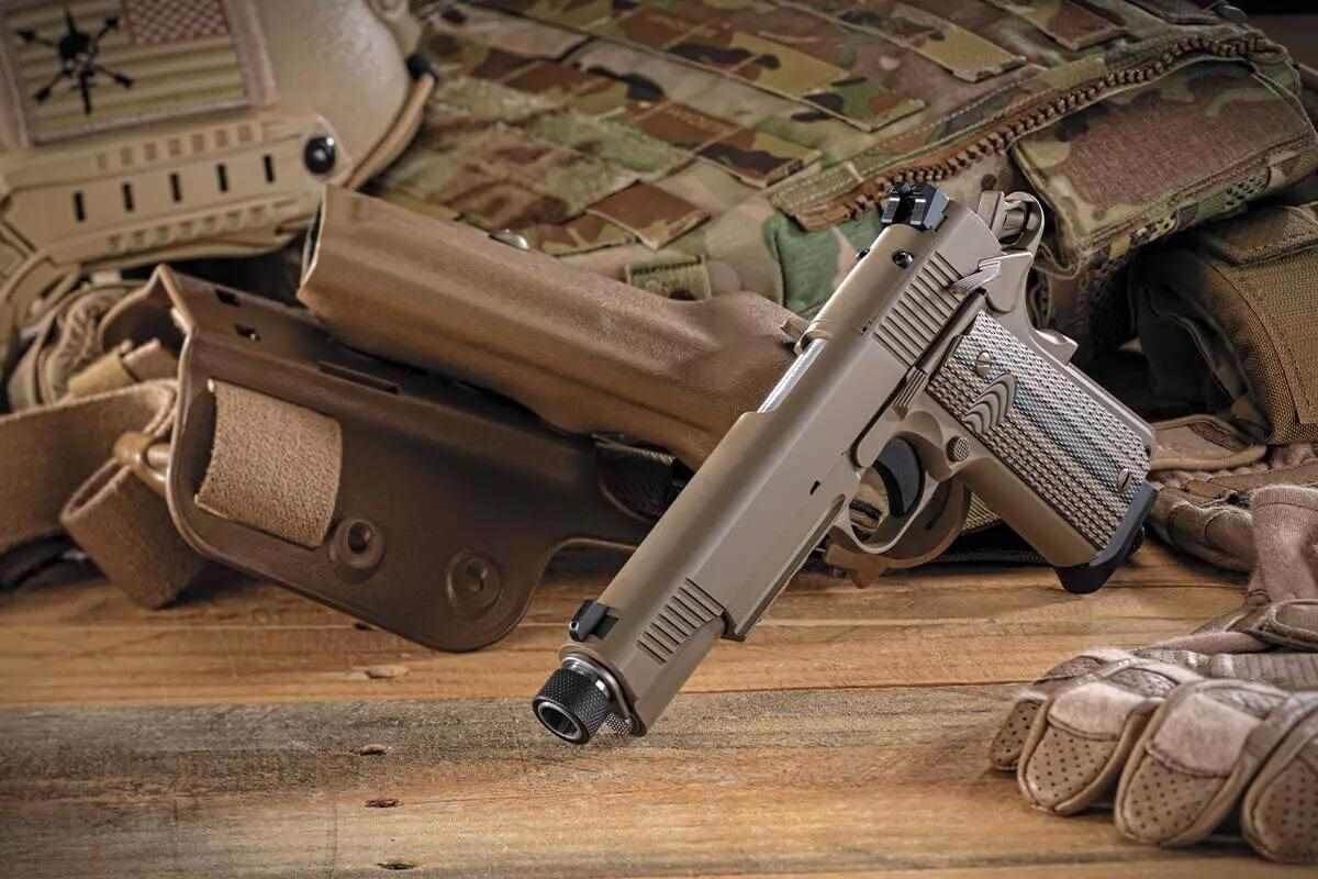 В 2012 году Marine Forces Special Operations Command (MARSOC) и разведывательные подразделения Корпуса морской пехоты получили новый пистолет. M45A1. Это был последний 1911, официально принятый на вооружение USMC. Двухпружинная система отбоя, планка Пикатинни, амбидекстральный предохранитель, ночные прицелы. И главное — покрытие Cerakote Flat Dark Earth. Пустынный. Тактический. Красивый.