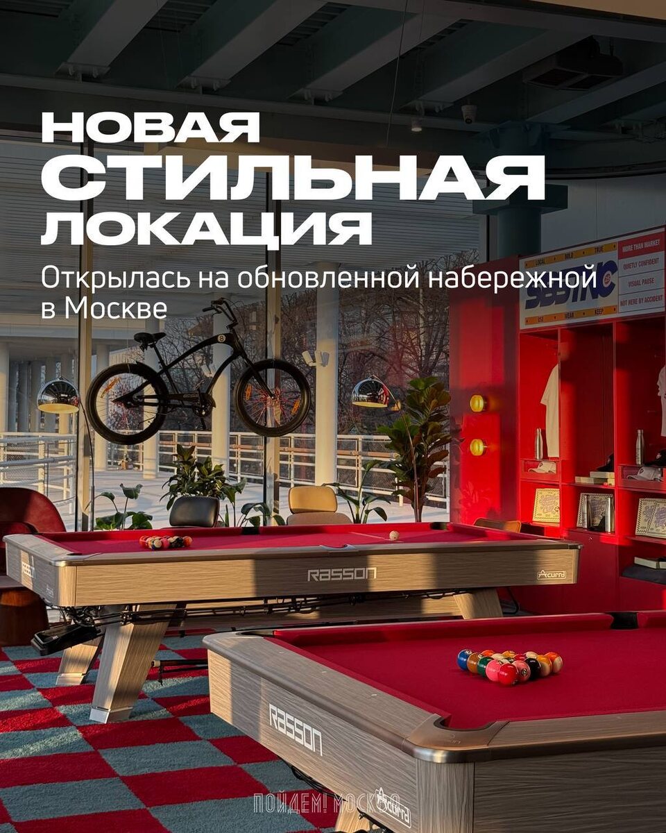 🔥 В Парке Горького открылось бильярд-бистро Substance. Стильный интерьер, вкусная еда, столы для игры и набережная под боком. Наш #ресторанныйдесант уверен, что это место идеально подходит для встреч с друзьями и необычных свиданий! Бёрем на заметку 🐯 🍽 Substance 😀ул. Крымский Вал, 9, стр. 5 📸 @poidem_moscow