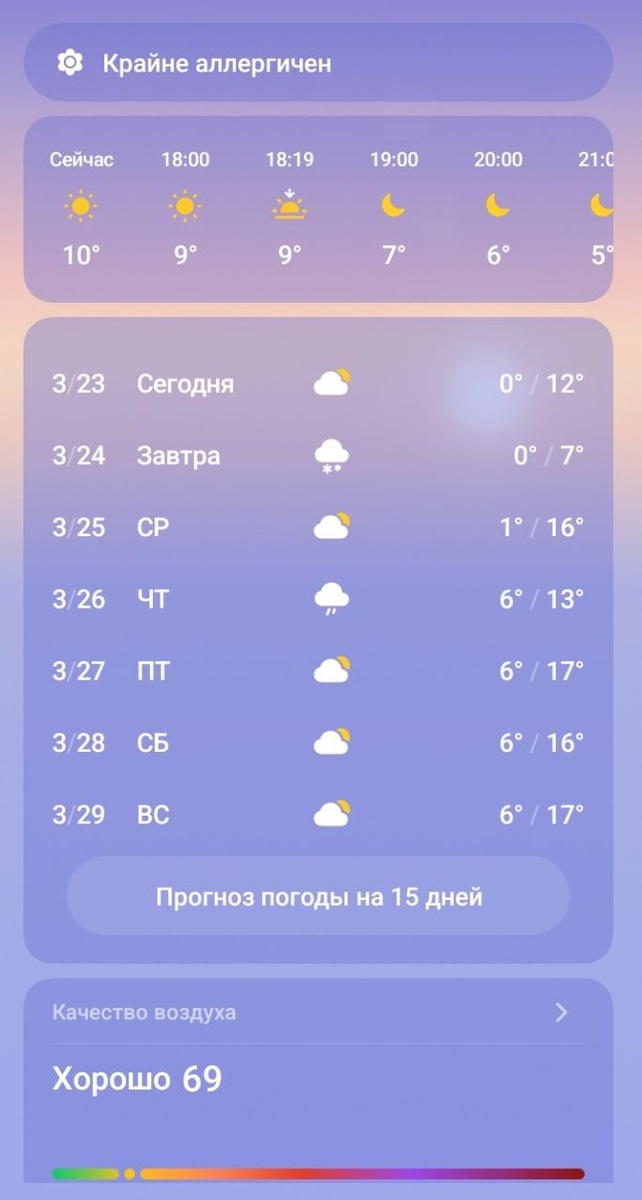 Чего ожидать непонятно: вроде уже тепло, но завтра ожидается снег, а в четверг – дождь😫. Отмечается очень высокий аллергический фон, но это неудивительно – природа постепенно просыпается. Так что, любуйтесь весенними первоцветами (специально для вас их сегодня сфотографировали📸), запасайтесь антигистаминными, ну и куртки далеко не убирайте.