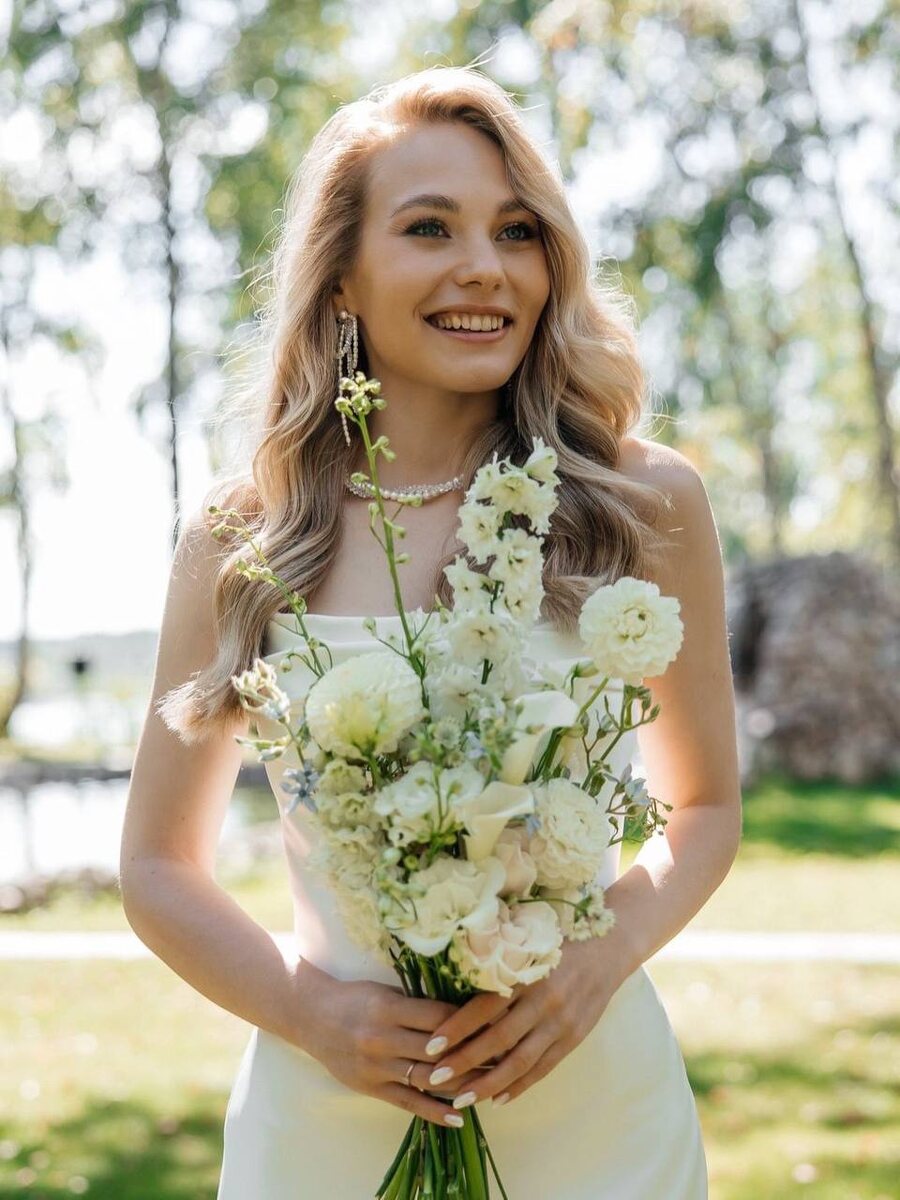 🤍 Каждая невеста мечтает о том самом образе - утончённом, гармоничном и запоминающемся ✨ 📌Сегодня делимся с вами свадебным образом Софьи ✨ Софья выбрала элегантное свадебное платье с чистыми линиями и благородным силуэтом, и ей захотелось расставить изящные акценты с помощью украшений. Она поделилась своим пожеланием: аксессуары должны сочетать в себе блеск и классику - без излишней вычурности, но с тем самым деликатным сиянием, которое красиво играет в свете свадебного дня 😌 Акцентом образа стали серьги «Ариана» и колье «Келли»✨ Украшения выполнены из стеклянного жемчуга и хрусталя - они идеально сочетаются между собой, создавая гармоничный комплект 💎 ❤️Серьги визуально вытягивают силуэт, подчёркивают линию шеи и добавляют лёгкое сияние у лица. ❤️Колье изящно завершает образ, мягко акцентируя линию декольте и связывая весь ансамбль воедино. Софья осталась в восторге от выбранных украшений и поделилась тёплым отзывом вместе со свадебными фотографиями 🤍
