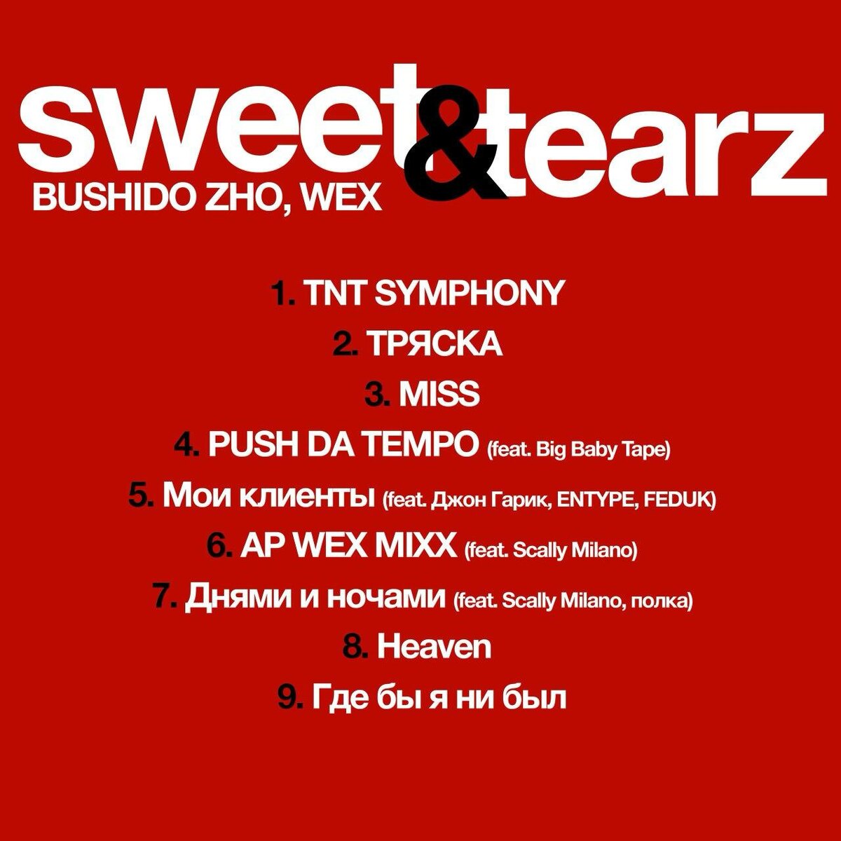 Треклист: 1. TNT SYMPHONY 2. ТРЯСКА 3. MISS 4. PUSH DA TEMPO ft. Big Baby Tape 5. Мои клиенты ft. Джон Гарик, ENTYPE, FEDUK 6. AP WEX MIXX ft. Scally Milano 7. Днями и ночами ft. Scally Milano, Полка 8. Heaven 9. Где бы я ни был @mainstreamusic