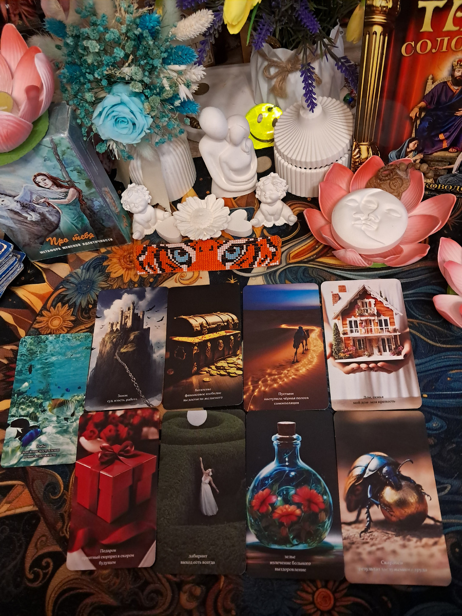 Эти две карты вместе — прямое указание на реализацию в личной сфере. Дом и семья перекликаются с 10 Кубков из предыдущего расклада (абсолютная гармония). А Подарок — это материализация того самого «неожиданного сюрприза», о котором говорили карты Таро. Причём подарок здесь не абстрактный, а входящий в пространство дома.