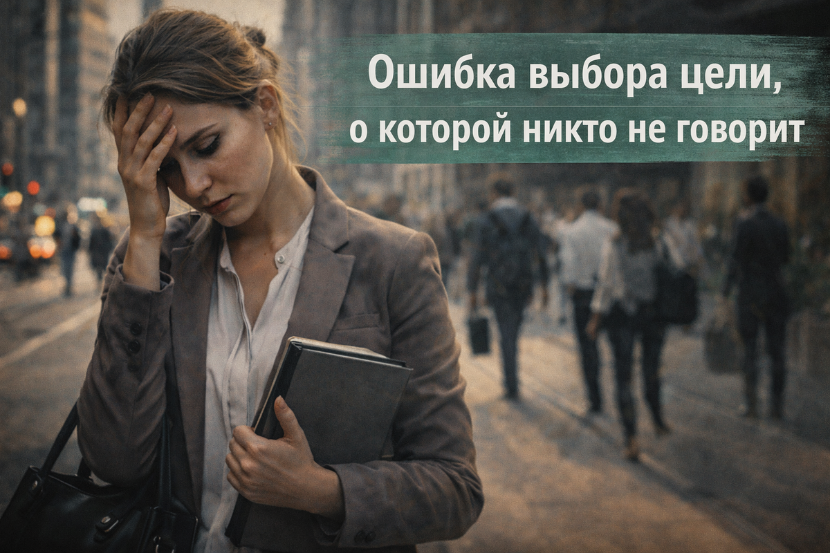 Самая опасная ошибка при выборе цели — не завысить планку. И даже не выбрать что-то слишком сложное. Самая опасная ошибка — выбрать то, что красиво выглядит, но по-настоящему не твоё. То, что звучит правильно, взросло, убедительно. Но внутри почему-то не зажигает. И вот здесь начинается странная история: ты вроде идёшь к цели, а сил на неё нет. Не потому что ты ленивый. А потому что организм очень тонко чувствует, когда ты тащишь не свою жизнь. Человек редко признаёт это сразу. Обычно всё выглядит прилично. Хочу больше денег. Хочу новую работу. Хочу дисциплину. Хочу тело лучше. Хочу выйти на новый уровень. Всё вроде разумно. Проблема в другом: за многими «хочу» на самом деле стоит не личный выбор, а смесь чужих ожиданий, тревоги, зависти, стыда и желания наконец почувствовать себя нормальным. То есть цель выбирается не из внутренней правды, а из внутреннего дефицита. Не потому что тебя реально тянет туда, а потому что тебе больно оставаться здесь. И тогда цель становится не направление