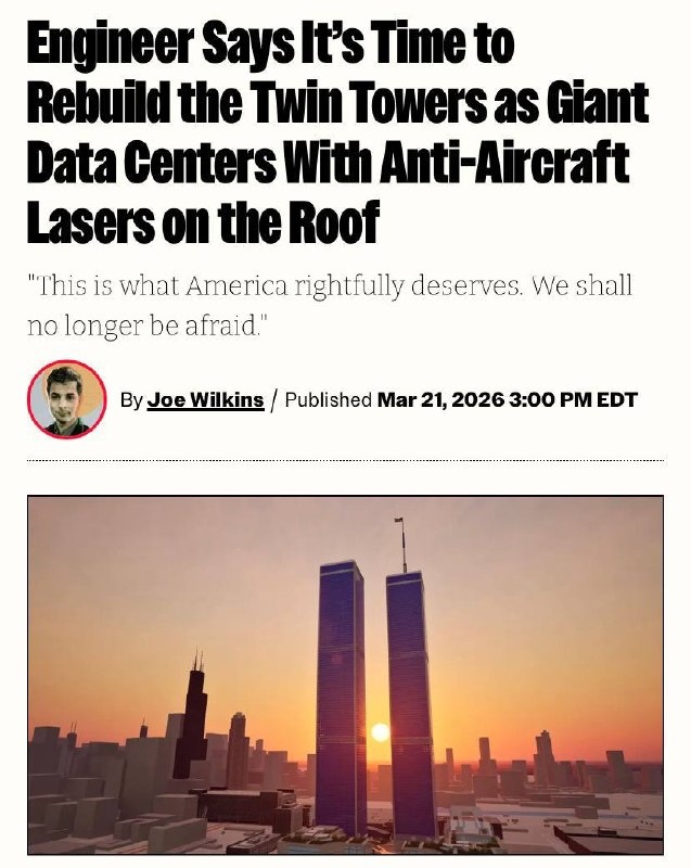 🤓Инженер Рафаэль Крислар предложил в США необычный проект, заново построить башни-близнецы, но уже в Чикаго, превратив их в огромные